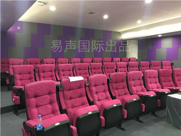 2、影音室白墙容易反光,所以施工时要对墙面进行深色处理。另外墙面尤其是侧墙声音第一反射点需要进行吸音处理。客户在反射点区域安装软包吸音装置。
