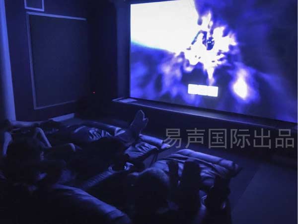 郑先生一直强调,独乐乐不如众乐乐来得幸福。要满足一家人一起看电影的需求,我们为郑先生设计了多个观看席位,通过位置角度距离的调试,使得每个座位都是观影的“皇帝位”。同时采用了200英寸的超大屏幕,以期取得最佳的观看效果。