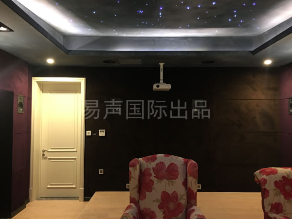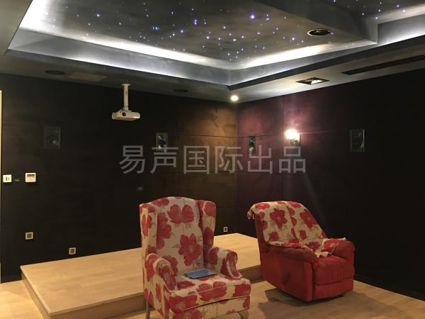 我们设计师到尤先生家里进行现场勘察后,选定了别墅地下室作为影视厅。40平米的空间足够设计师发挥创意,通过对设备的选择组合,调试安装,再结合对影视厅细节环境的构造,最终造就了一套7.1.4声道1080P的高清家庭影院,由此,尤先生便可以在家中畅享视听盛宴。