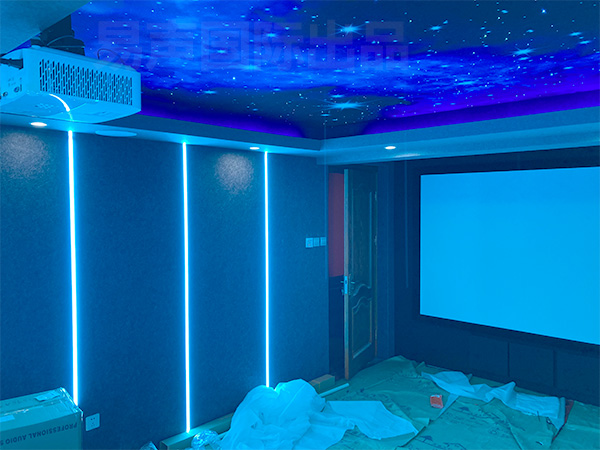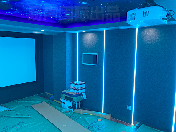 杭州龙湖香堤溪岸为兼顾私家影院和卡拉ok项目,家庭影院器材既要突出震撼的影院效果,还要为配合房间的整洁风格,使全部器材做到隐形。实际使用面积约30平方米。
