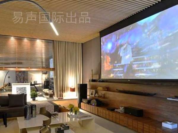 黑色显得成熟稳重,我们为方先生组建的影院是以黑色为主调的,给人以低调又不失格调的感觉。另外,结合方先生对宽视域的追求,以及客厅较大的缘故,我们选用了瑞普的150英寸电动幕布,1.5倍的增益效果,4:3的宽高比例,给人极佳的视觉享受。