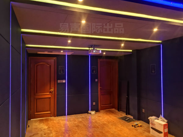 本项目百郦玲珑府,项目是老客户介绍朋友找到我们来打造的影音项目。家庭影院的基层施工配合别墅装修进行,缜密严谨的施工方案是保障工程有序进行的保障。首先,针对房间声学的特性,我们需要在空间内进行隔音处理,进而着手基层龙骨和线材布设的工作。声学设计方面,隔音、吸音、扩散、消除驻波等,一个也不能少,这里我们讲究在正确合理的位置布设正确合适的声学材料,项目中使用的声学材料有:聚酯纤维吸音板、吸音棉、扩散板、隔音板等。基本的声学处理施工方案确定后,影院饰面装修是取悦业主的关键环节,在充分了解业主喜好的基础上,先期效果图的呈现令业主满意。易声国际设计所有的影音方案都会考虑重播影片类型的多样性,以及声音重播准确的严格监听级标准,全套器材要求不能只突出震撼的影院效果,还要富于人文气息,观看以描写人物心理为主的文艺片也要准确的可以通过悠扬的配乐来完整体现影片内涵。这就要求我们在器材的选取上,不能只单纯的追求动态,更要多方面的考量最终全套器材搭配的实用性。房间面积约30米。