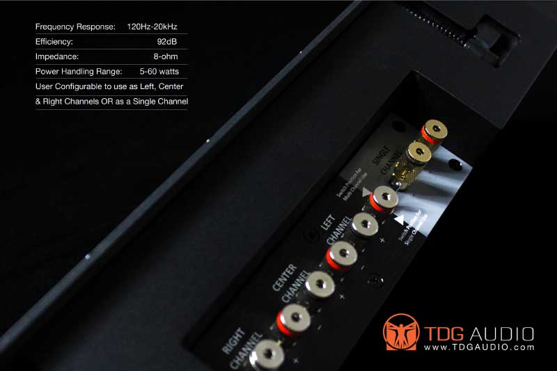 TDG AUDIO的革命性系列产品SKY BAR全面颠覆了传统家影的前面安装三只音箱的传统方式,将所有产品设计为最多可以连接三组功放放大的设计。这样无论家居环境如何刁钻,该系列产品都可以自由组合安装在房间里面。上面提到的中置音箱问题,也可以仅靠在银幕两侧安装两只音箱就可以满足传统音箱的左中右三只音箱的信号重播。这样不仅可以前置声场音色的无暇衔接,还可以重播出来定位极其准确的中置音箱定位。